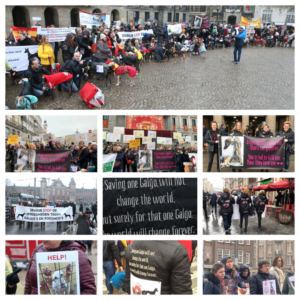 Protest in Amsterdam tegen misstanden jachthonden Spanje Op zondag 2 februari protesteerden 150 mensen met 100 galgo’s en podenco’s in Amsterdam tegen de misstanden bijjachthonden