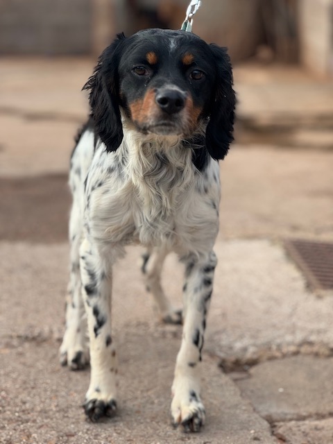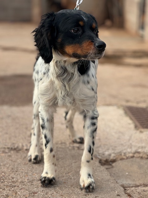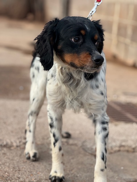 Pomodoro is een lieve jonge Bretonse Spaniël, pas een jaartje oud. In zijn zeer jonge leventje heeft hij al veel ellende meegemaakt. Gelukkig is hij nu veilig in het asiel. Hij is nog wel een beetje verlegen, maar nu de verzorgers wat beter kent, leert hij ze vertrouwen en is hij erg aanhankelijk en lief. Pomodoro is zeer actief en kan heel goed samen met andere honden.