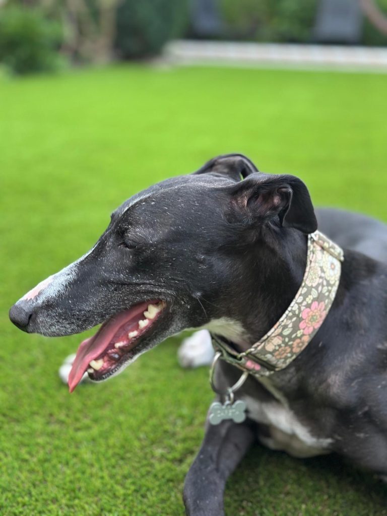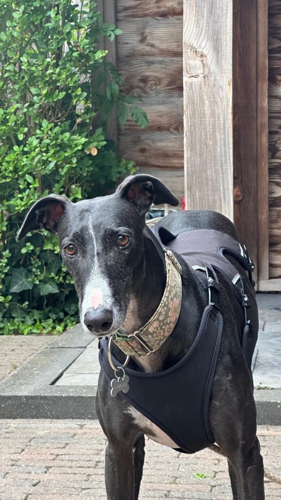 Careta leeft nu samen met twee andere honden, een Podenco en een “Chien de la rue” of te wel straathond uit Griekenland. Ze functioneert prima in de roedel en heeft het naar haar zin. Careta komt graag een knuffel halen van de bazen, ligt graag naast je. Een omheinde tuin is heel fijn voor Careta. Ze voelt zich daar ook veilig en speelt ook graag, met een andere hond uit de roedel of met een bal of knuffel. Careta kan een paar uurtjes alleen zijn met de andere honden erbij, maar ze heeft de steun van een andere hond wel nodig. Careta is rustig in huis en slaapt graag. Onder invloed van de “Chien de la rue” is ze wel wat waaks geworden. Dat heeft ze van hem geleerd.