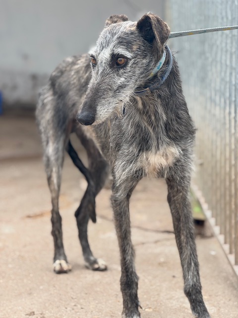Dragón is een prachtige galgo reu met een zacht en gevoelig karakter. In het begin is hij wat verlegen en heeft hij tijd nodig om nieuwe mensen te vertrouwen.