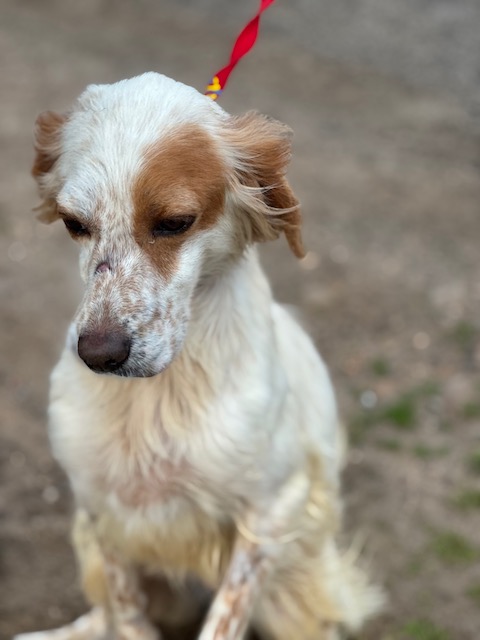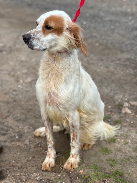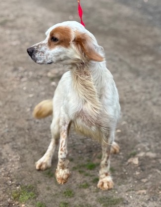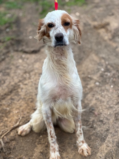 Engelse Setter Adi kwam verschrikkelijk mager binnen in het asiel, letterlijk vel over been. Het is duidelijk dat ze veel heeft meegemaakt in haar korte leventje. Gelukkig is ze liefdevol opgenomen in het asiel en knapt ze zienderogen op! Ze is lief, vrolijk en actief en kan het goed vinden met de andere honden. Ook komt ze al lekker wat aan!