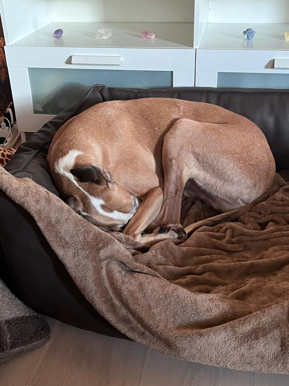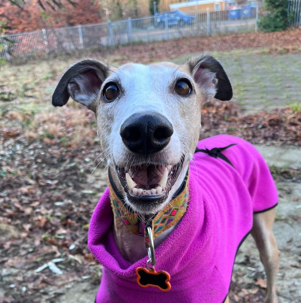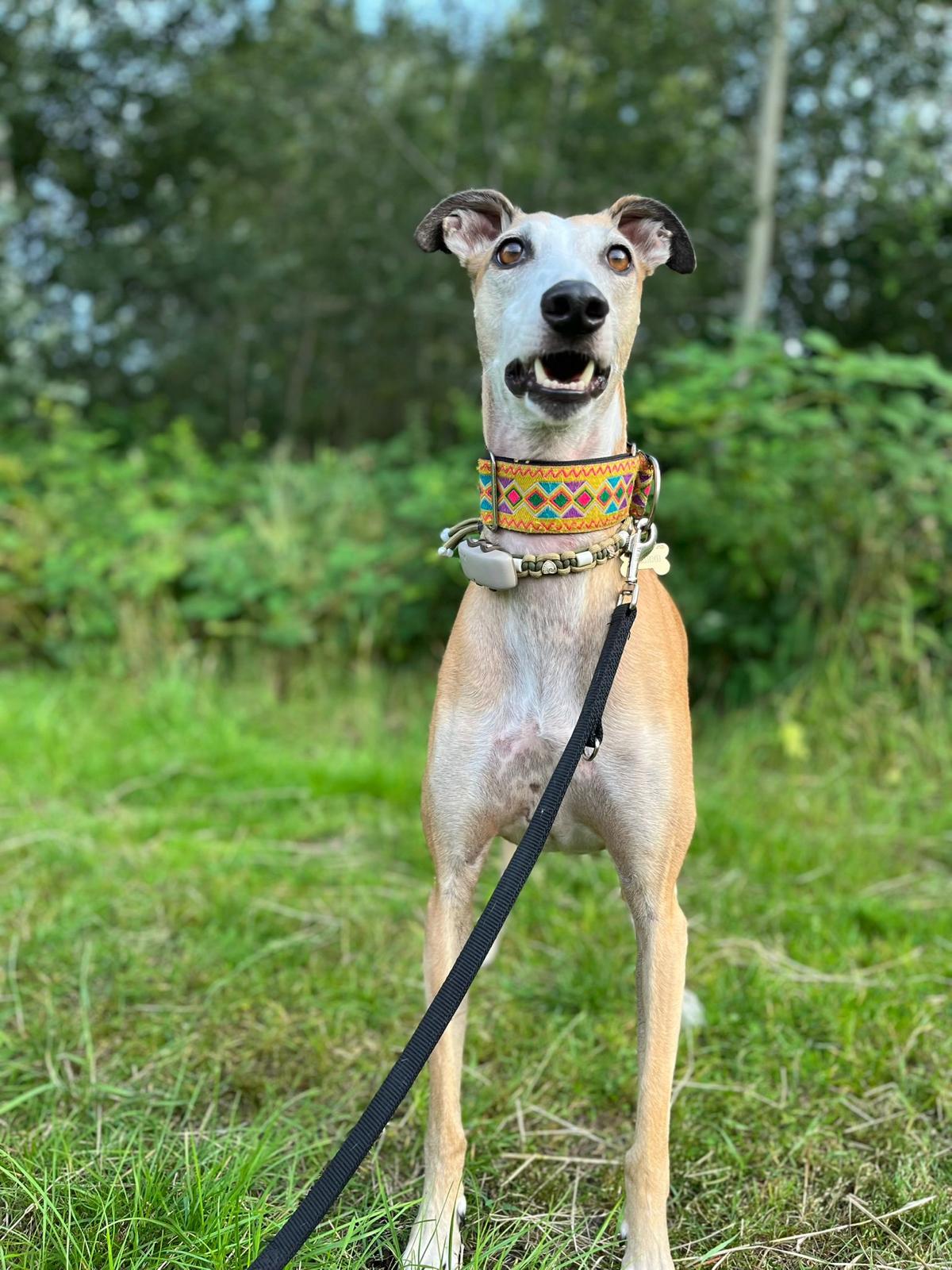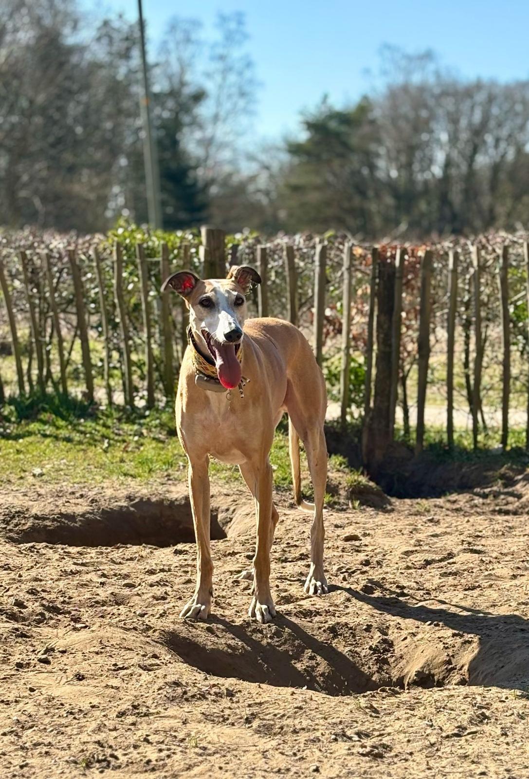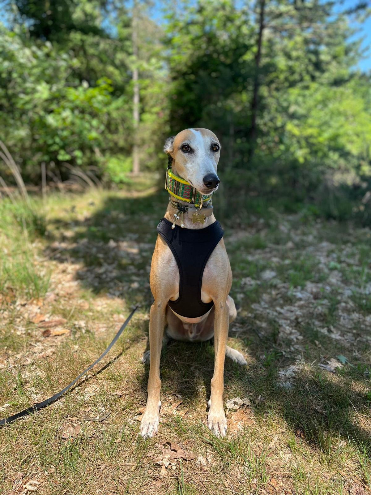 Ezra is een zelfverzekerde, stabiele galgo jongen van 5 jaar oud die nergens bang voor is. Hij staat vol vertrouwen in het leven en is altijd in voor een avontuur. Lange, stevige wandelingen maken hem intens gelukkig — of dat nu door het bos is of midden in de stad tussen de mensen, Ezra geniet overal van.