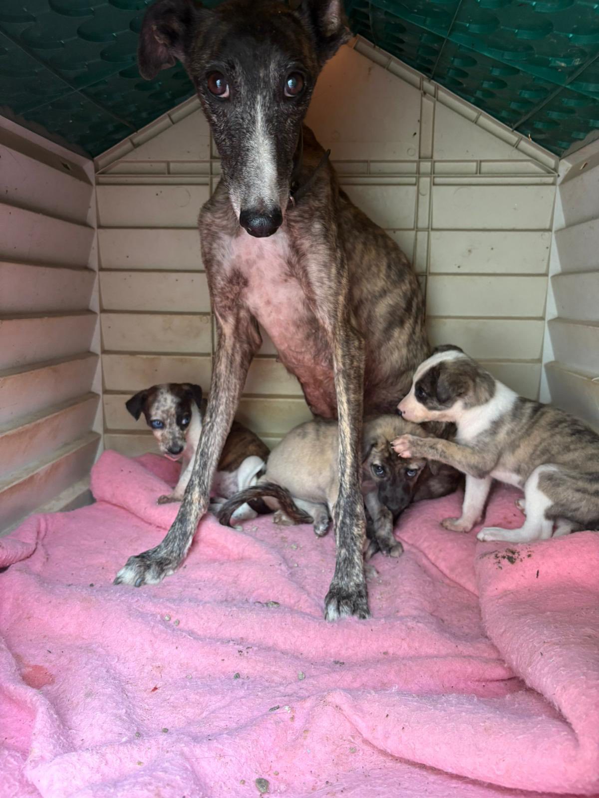 Mama Sarrah is erg bang en heeft medische aandacht nodig, gelukkig krijgt ze goede zorg in een pleeggezin. Haar pups zijn nagekeken door de dierenarts en zijn helemaal in orde (ze kunnen pas later op de mediterrane ziektes worden getest). Ze zijn super lief, vrolijk, speels en vol levenslust en gaan samen naar een ander pleeggezin om lekker onbezorgd pup te zijn.