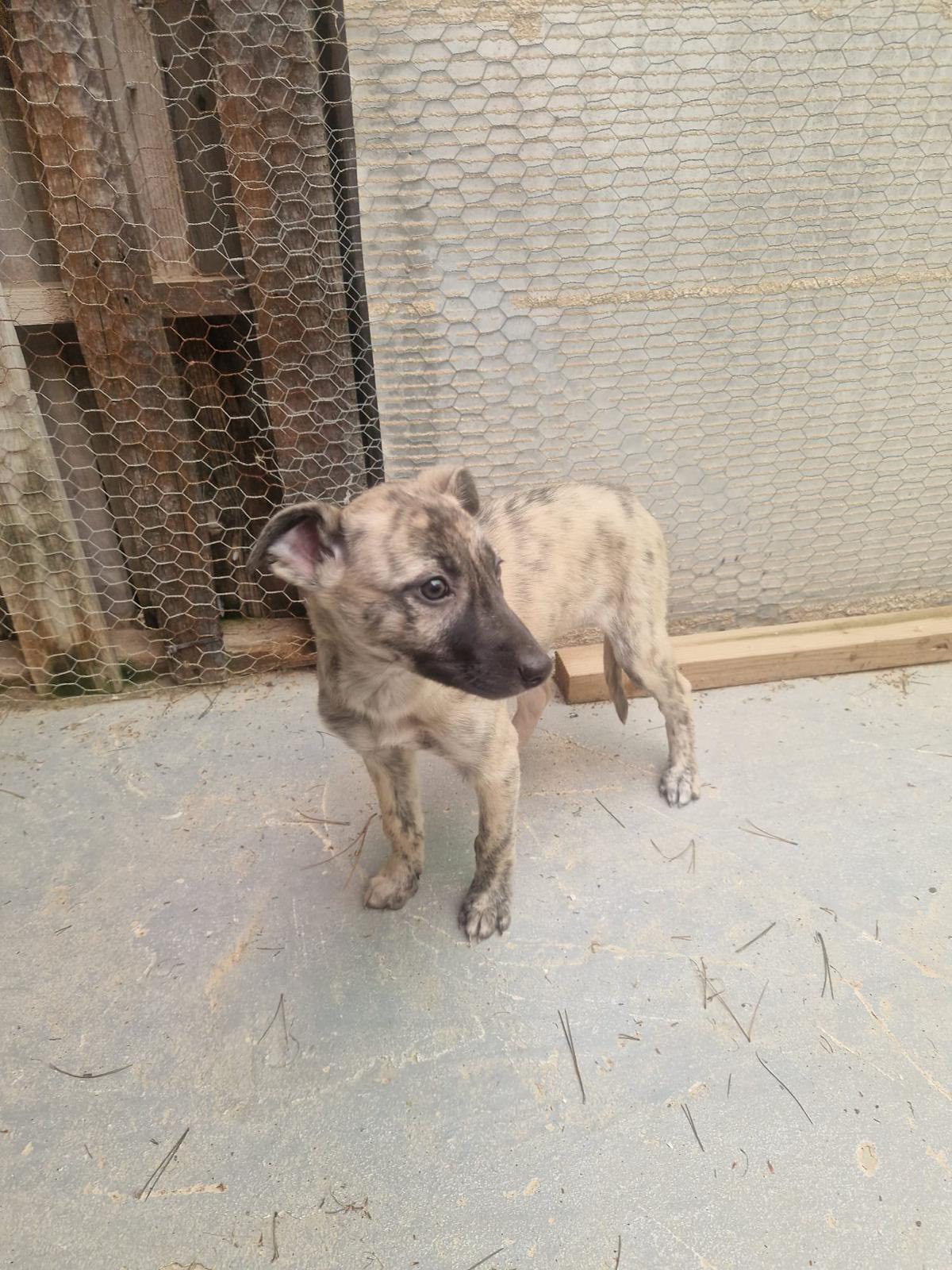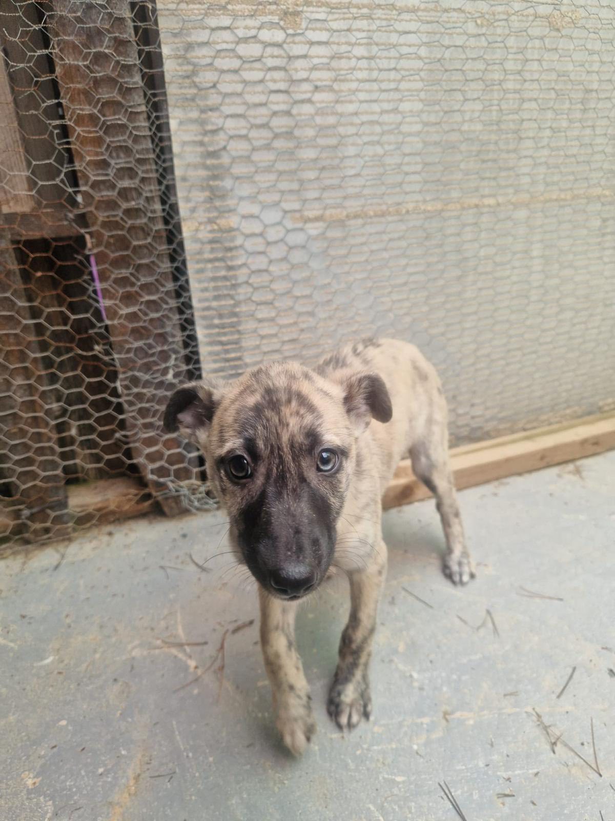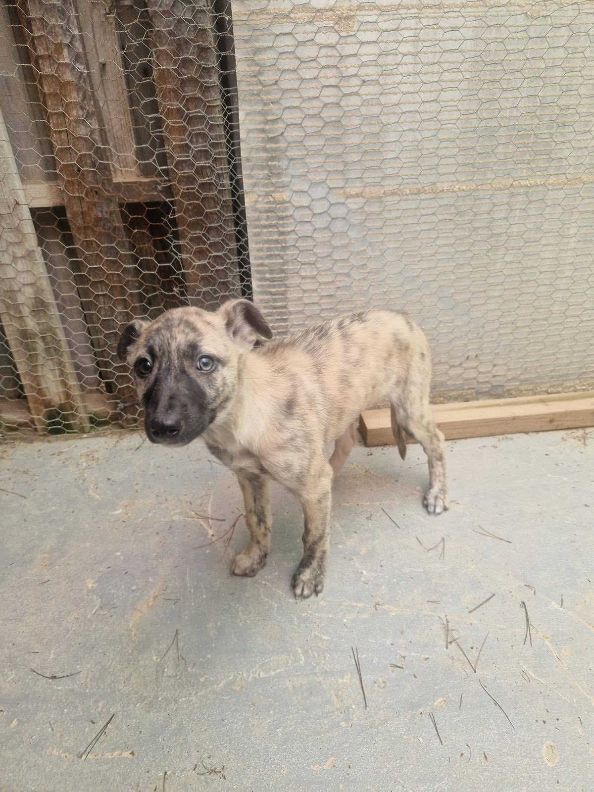 Angie is een galgomix pupje van ongeveer 7 weken oud dat vorige week samen met haar mama en twee zusjes is gevonden in een veld in Spanje. Eerst werd mama gevonden met één van de pups, maar gelukkig gingen de rescuers de volgende dag terug en vonden ze de andere twee!