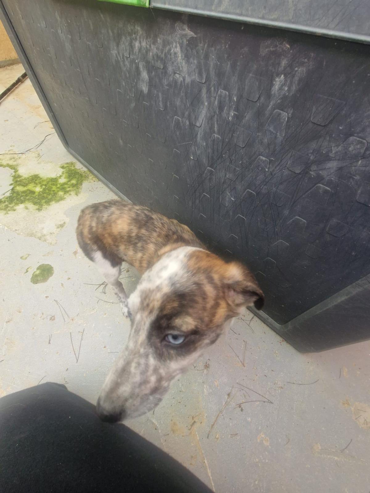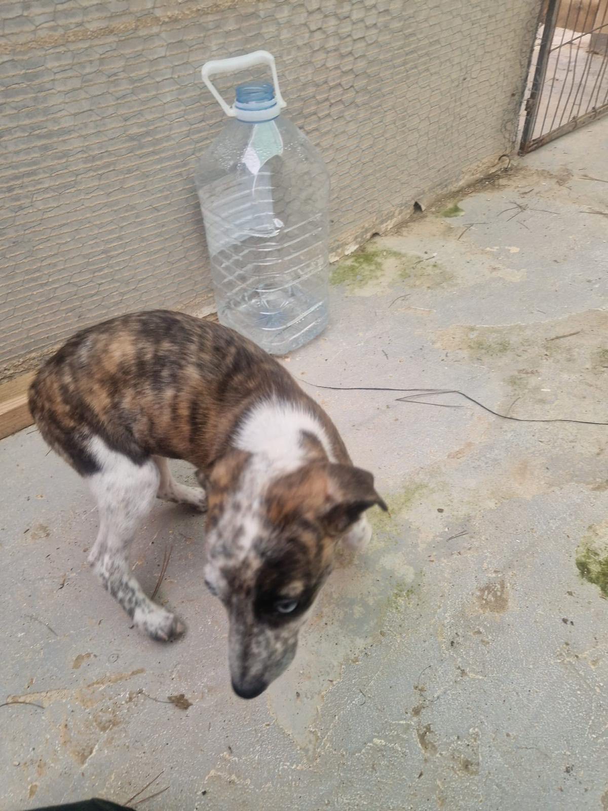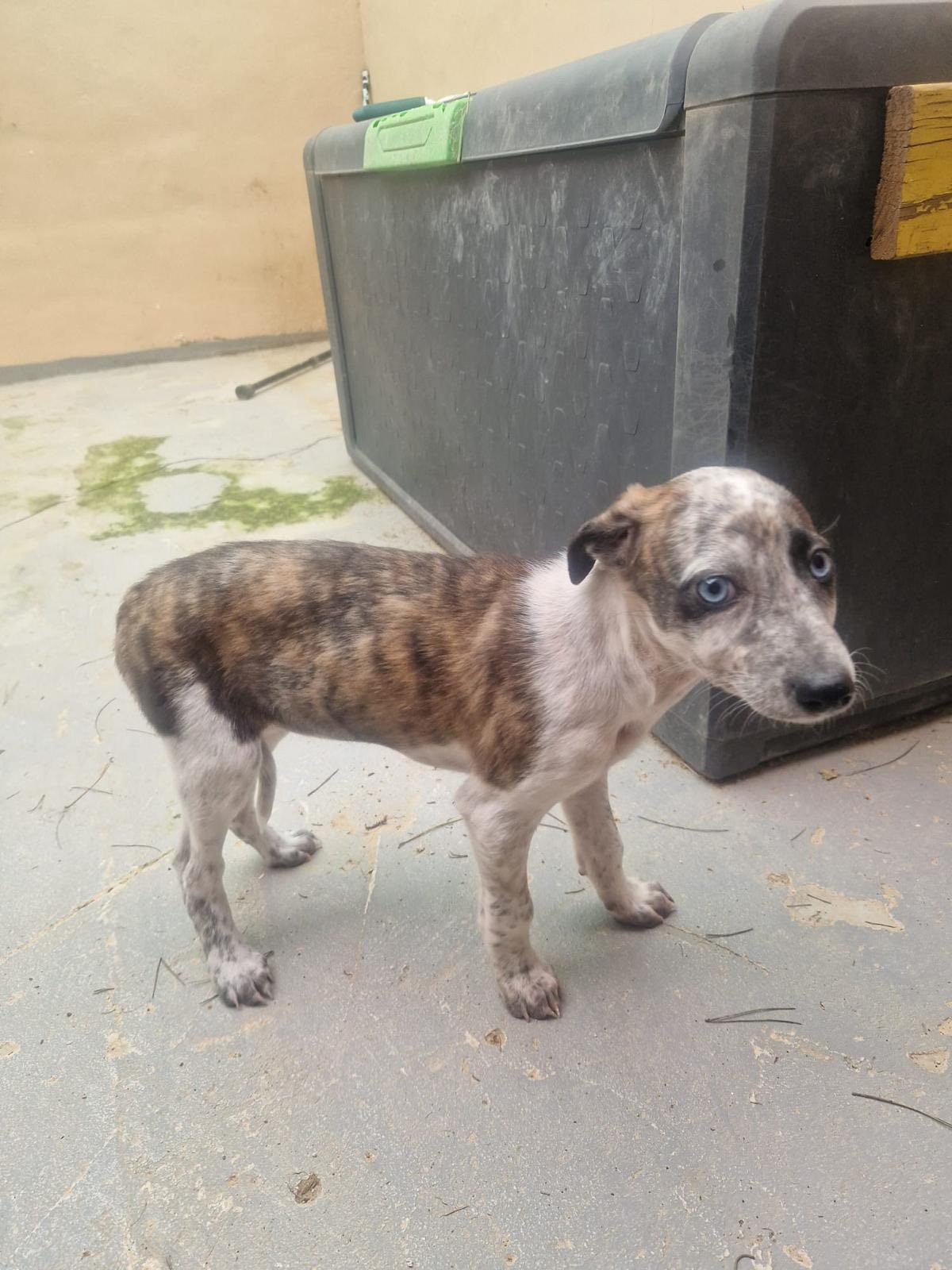 J.J. is een galgomix pupje van ongeveer 7 weken oud dat vorige week samen met haar mama en twee zusjes is gevonden in een veld in Spanje. Eerst werd mama gevonden met één van de pups, maar gelukkig gingen de rescuers de volgende dag terug en vonden ze de andere twee!