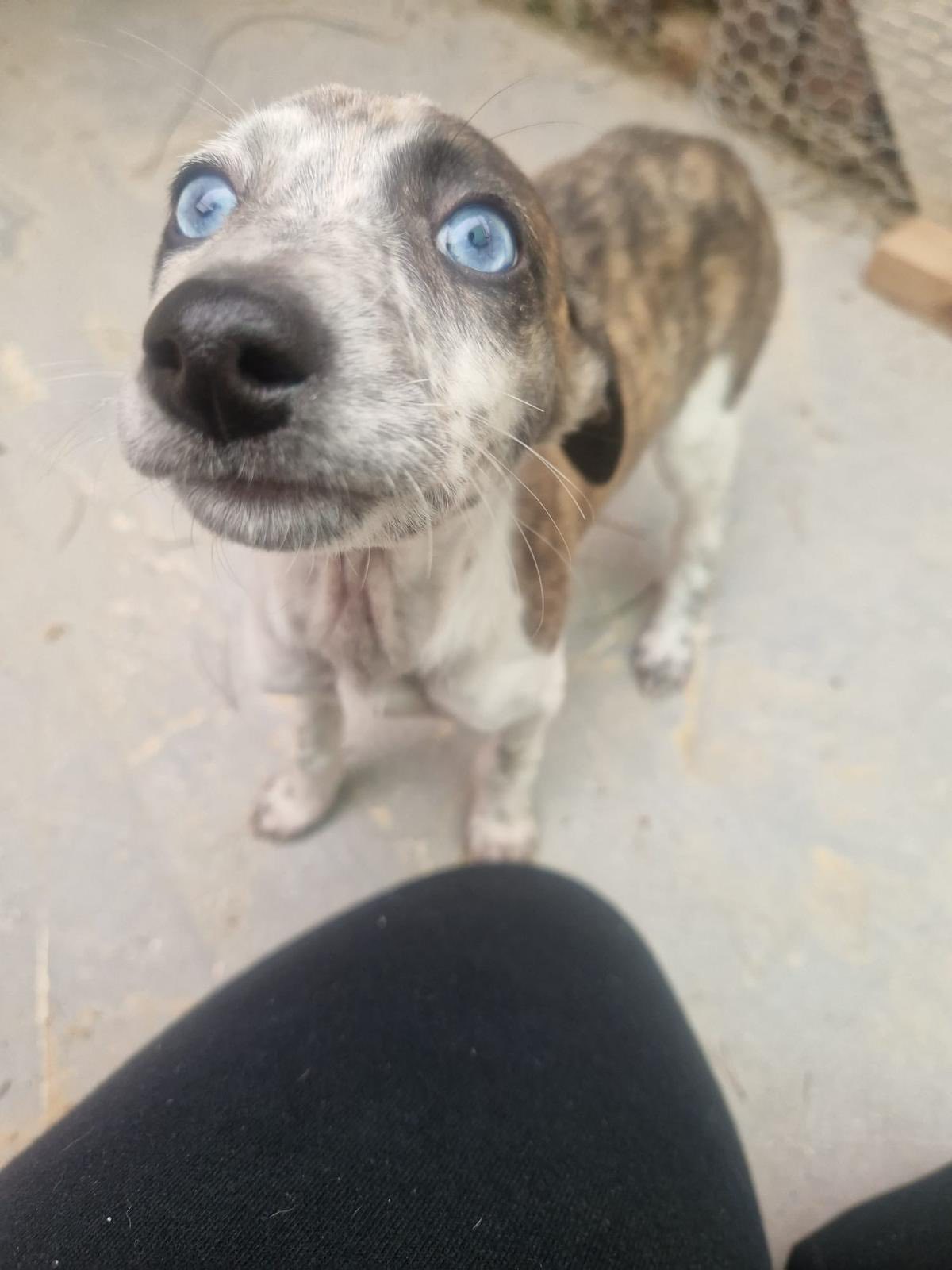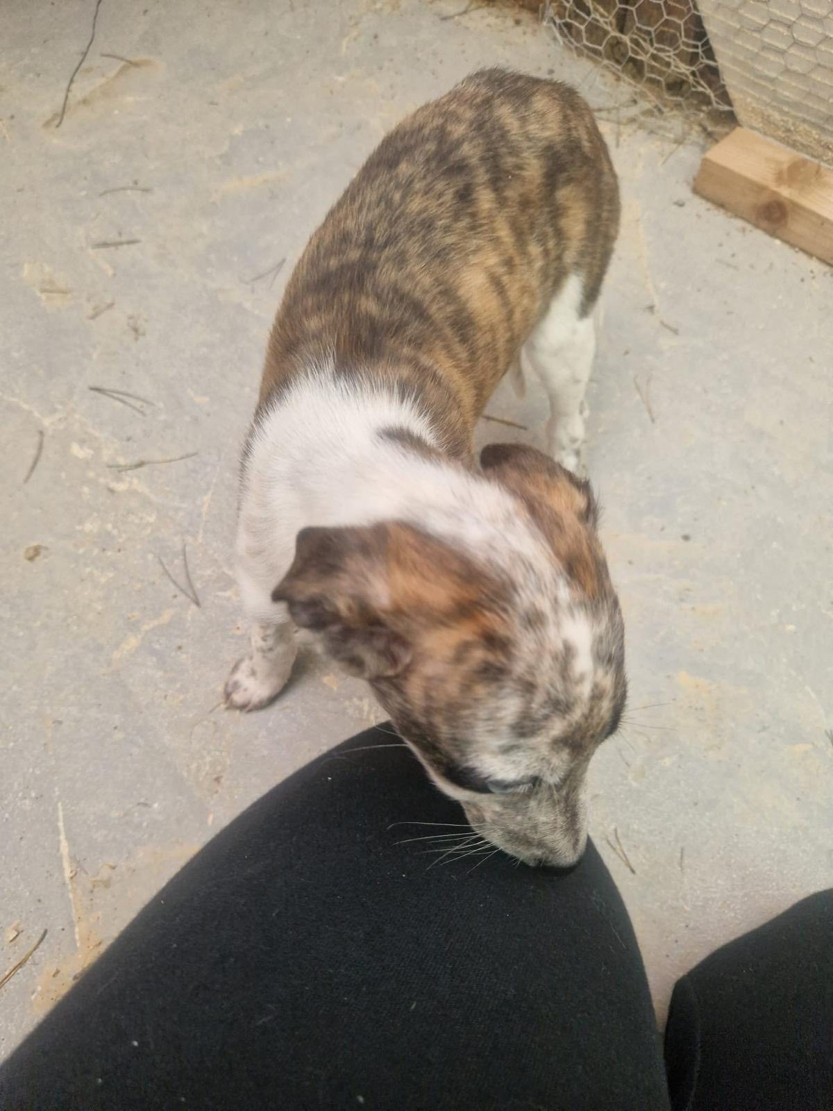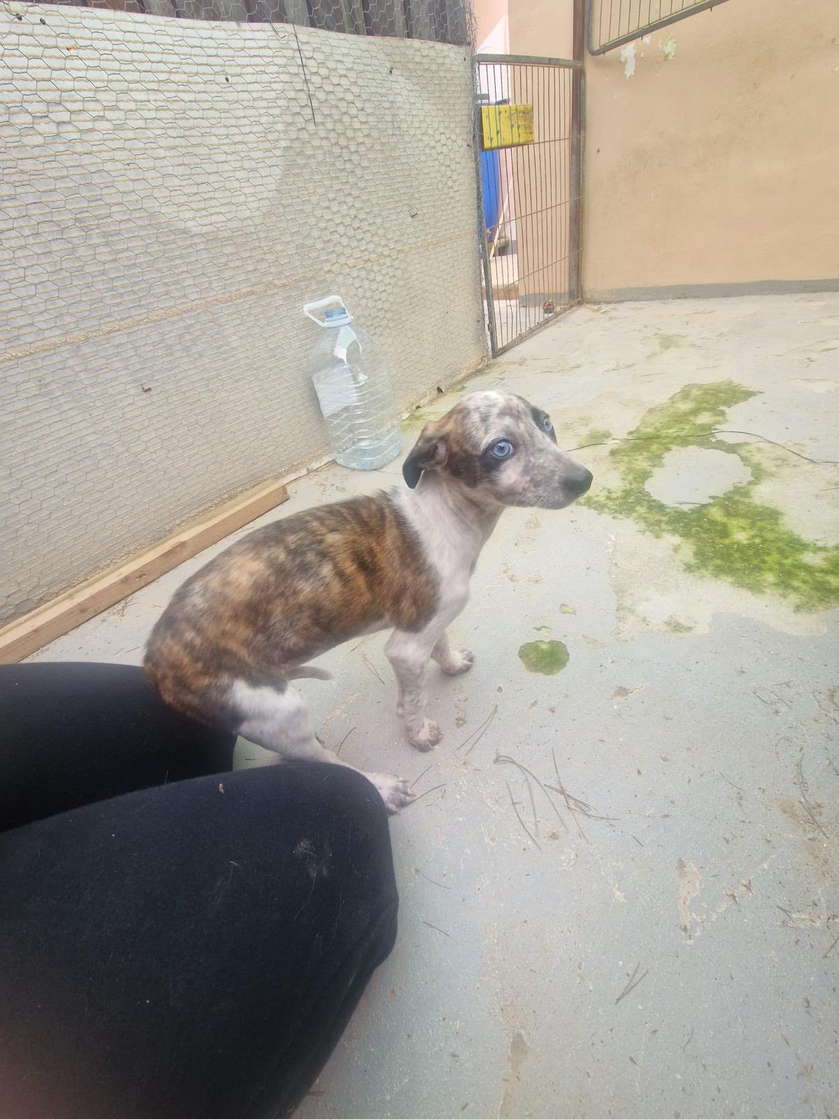 J.J. is een galgomix pupje van ongeveer 7 weken oud dat vorige week samen met haar mama en twee zusjes is gevonden in een veld in Spanje. Eerst werd mama gevonden met één van de pups, maar gelukkig gingen de rescuers de volgende dag terug en vonden ze de andere twee!