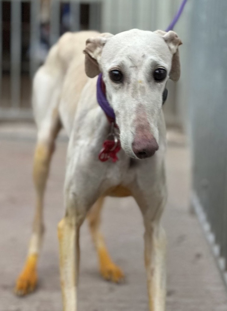Lía is een sierlijk meisje van 5,5 jaar. Ze werd samen met Kira van dezelfde jager en moet nog wennen aan haar nieuwe situatie en het leven in het overvolle en drukke asiel.