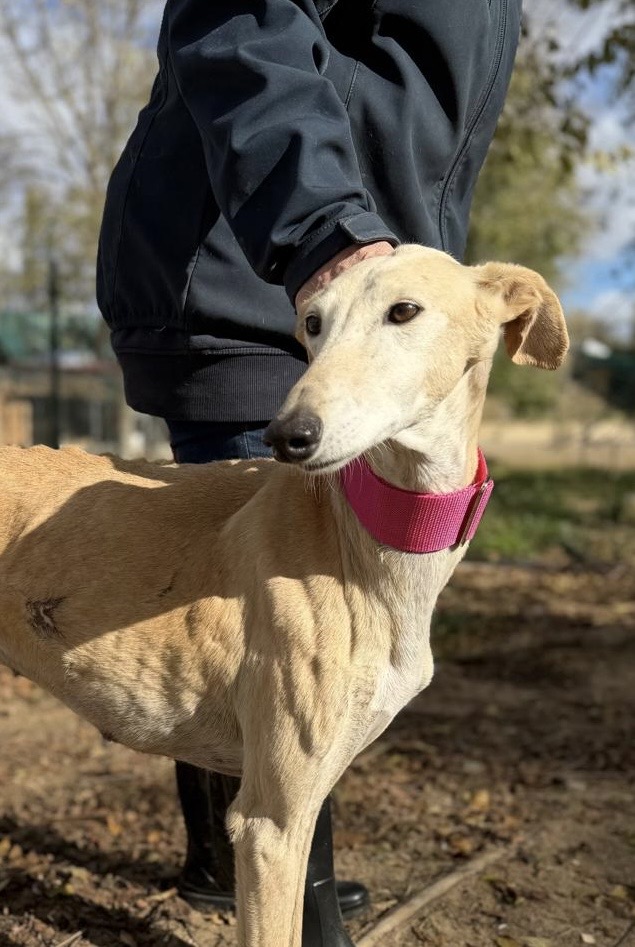 Dit mooie, blonde teefje is een lief, gevoelig en rustig meisje met een zachte uitstraling. Haar lichaam draagt littekens van vroeger, het is duidelijk dat ze het niet gemakkelijk gehad en dat ze behoefte heeft aan rust en veiligheid.