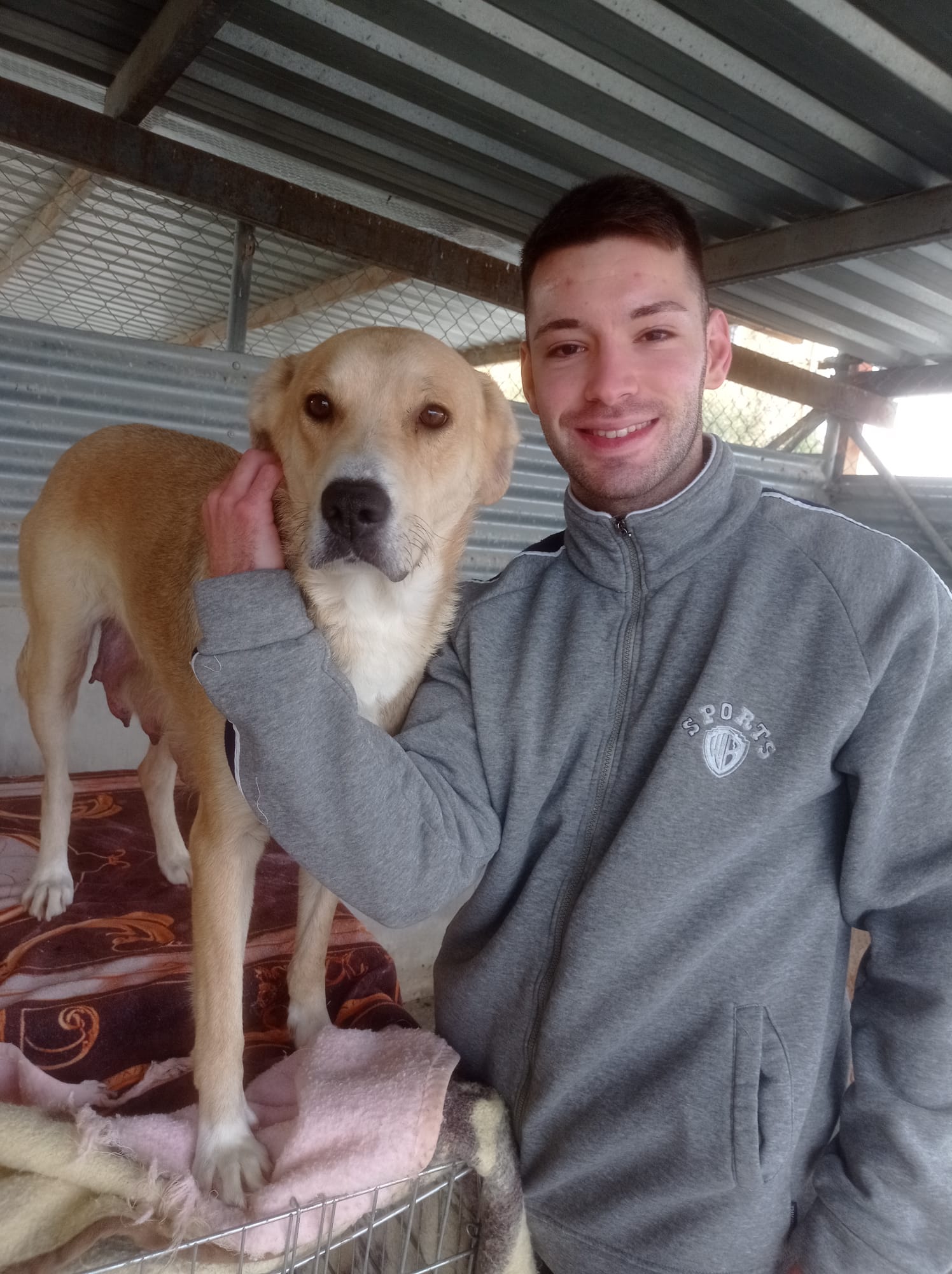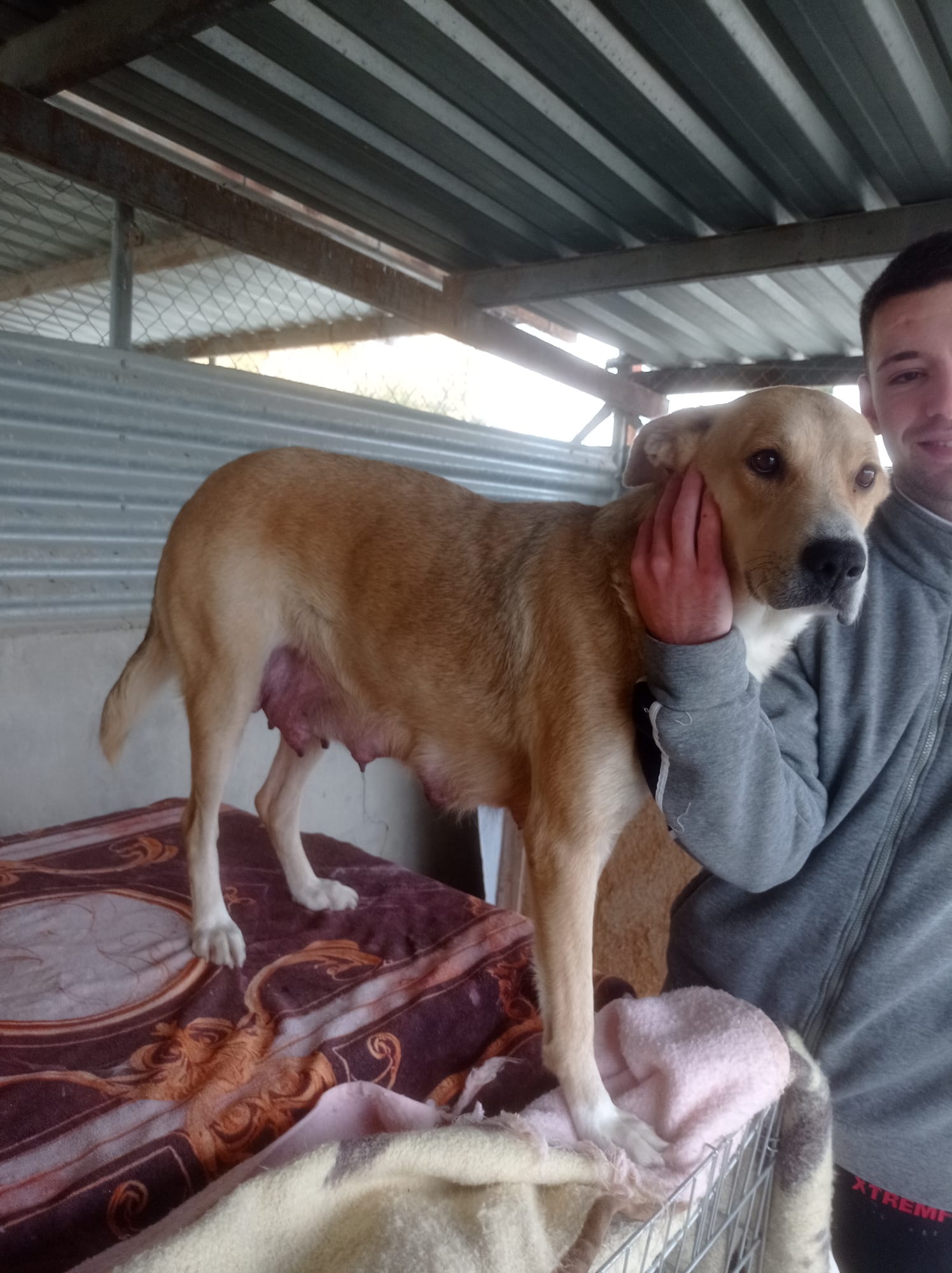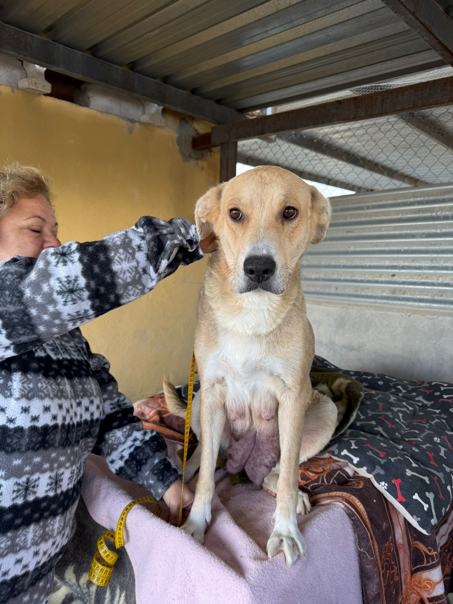 Moira kwam samen met haar 9 puppies in het asiel terecht. We weten niet wat haar achtergrond is, maar ze zijn nu gelukkig veilig! De papa van de pups is waarschijnlijk een mastin, maar Moira is een mooie blonde mix.