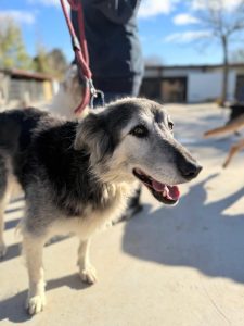 Lieve mix Mora (teefje) – Beschikbaar Mora… wat een bijzonder meisje. Al meer dan twee jaar kijkt ze vanuit haar kennel toe hoe andere honden