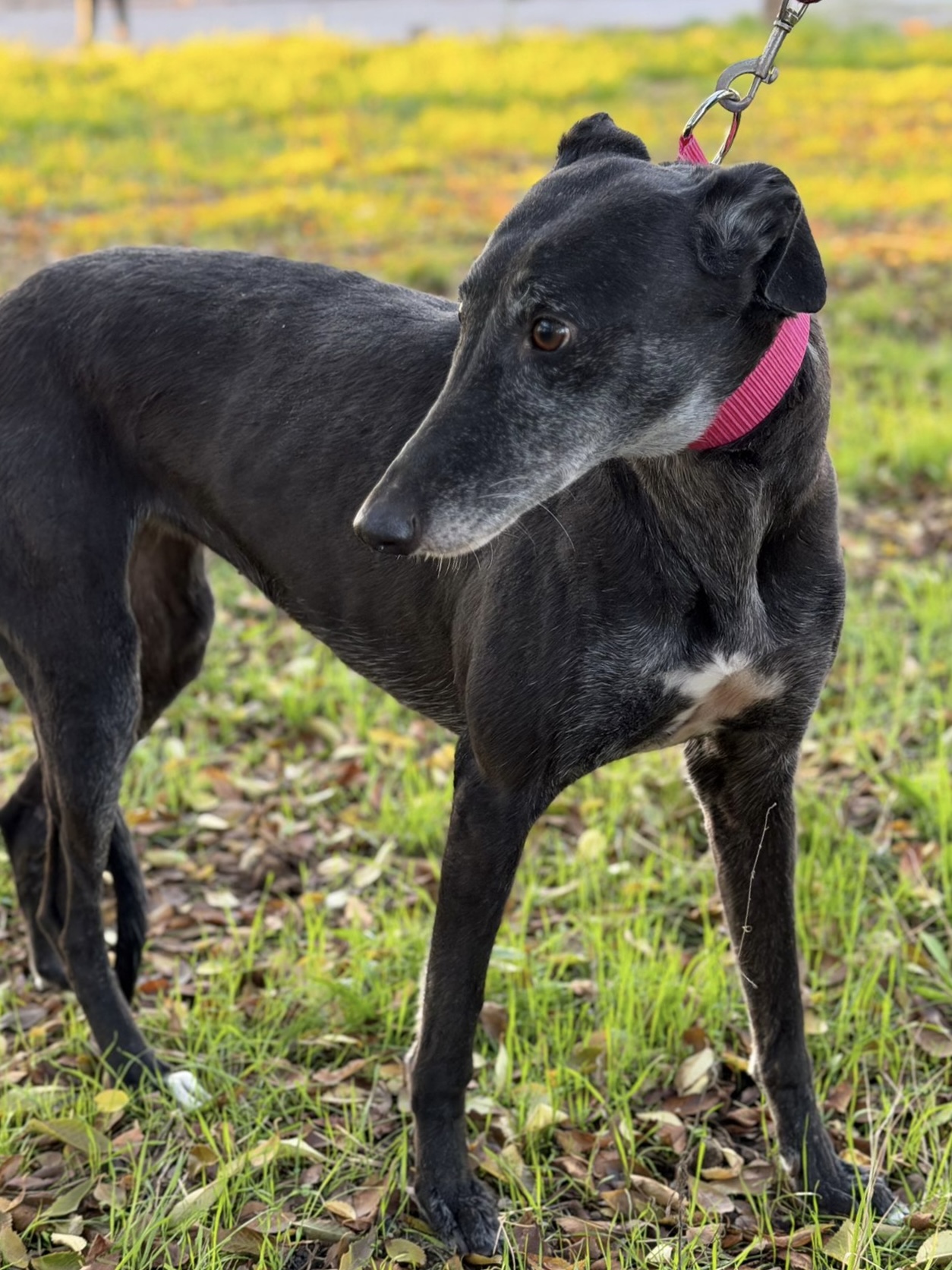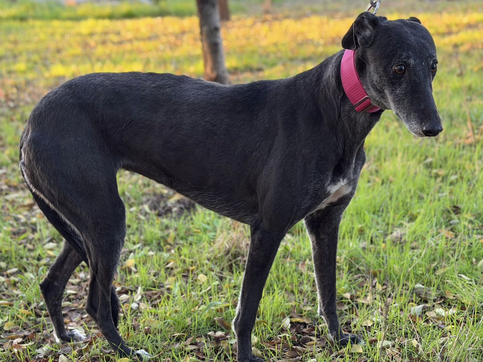 Loka is een Greyhound teefje van 7 à 8 jaar oud met een hart van goud. Nog een beetje timide, maar ze is superlief, rustig én sociaal met andere honden.