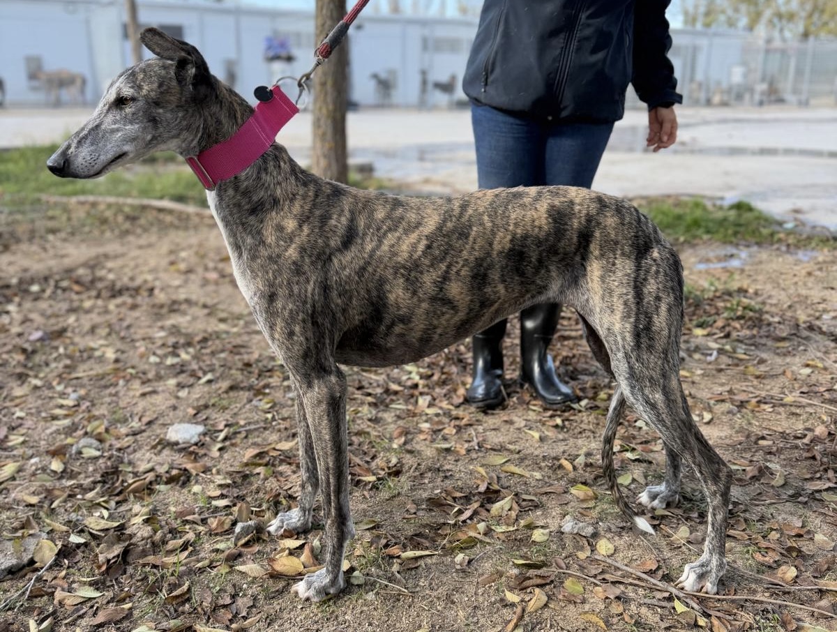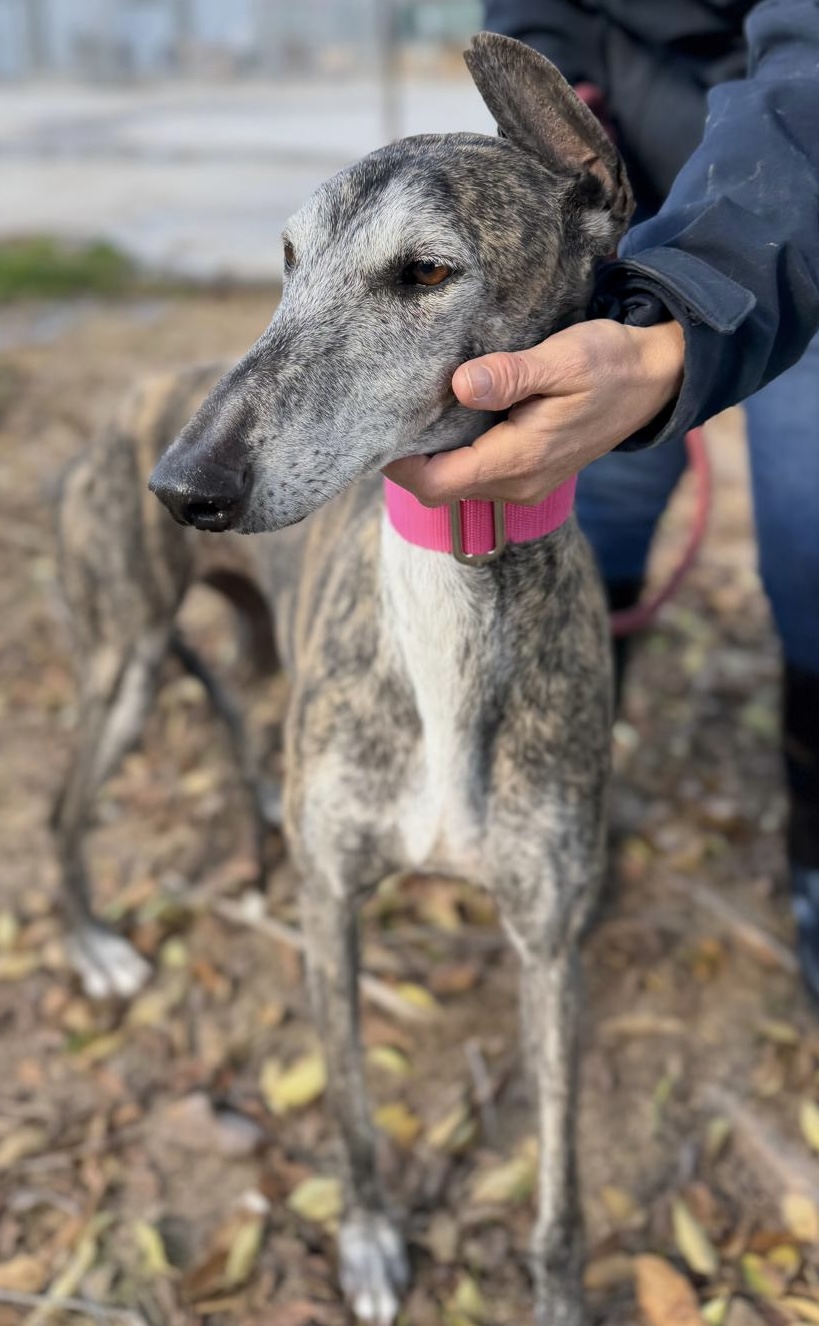 it mooie meisje is Oreja – dat betekent letterlijk “Oortje” – ze betovert je toch meteen met dat knappe oortje en lieve uitstraling?! Ze heeft alleen een leven gekend bij haar jager waarin ze vooral moest presteren en nooit écht liefde en aandacht heeft gehad. Nu ze niet meer snel genoeg was, werd ze afgedankt.