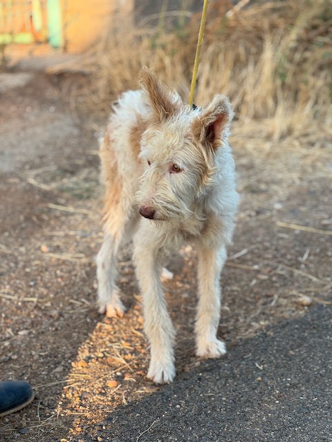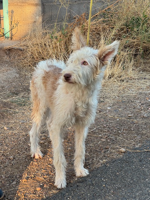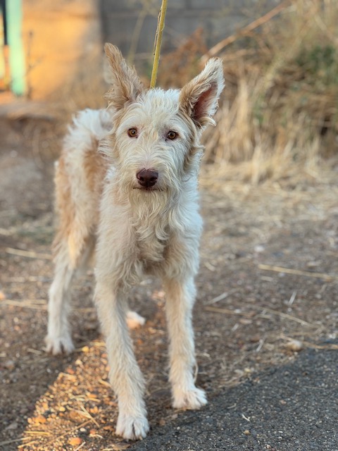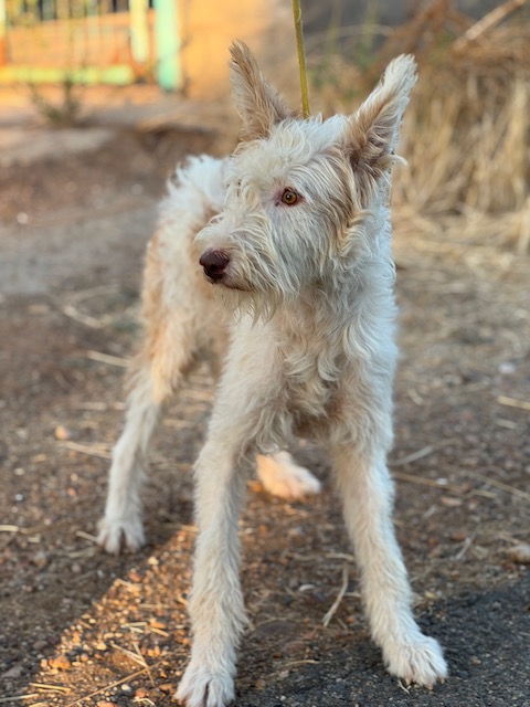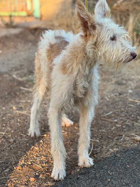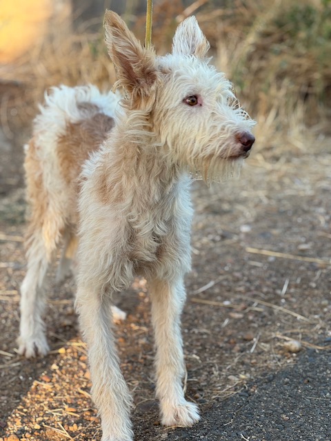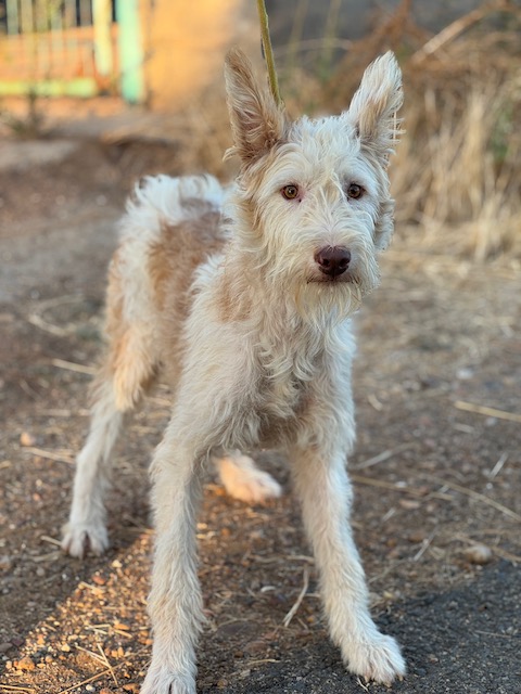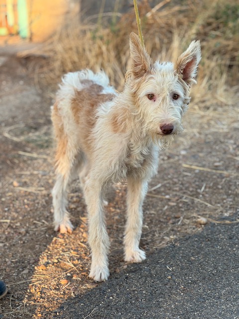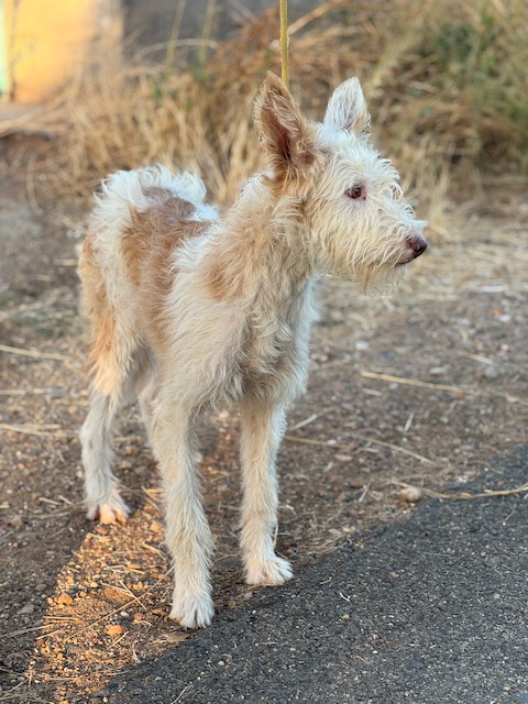 Ambrosia is een prachtige ruwharige Podenco. Ze is zachtaardig, rustig en braaf, en verlangt vooral naar een warm thuis waar ze zich veilig voelt en eindelijk gewoon hond mag zijn. Met liefde, geduld en aandacht zal ze helemaal opbloeien.