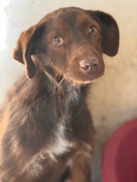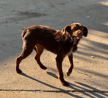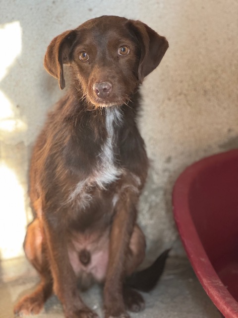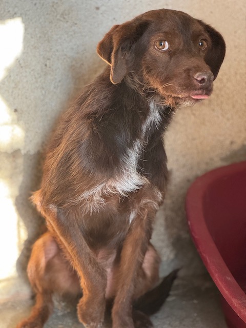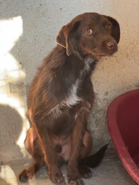 Dit schattige chocolaatje is Choco! Choco is een podenco met een bijzonder mooie ruwharige chocoladebruine vacht.
