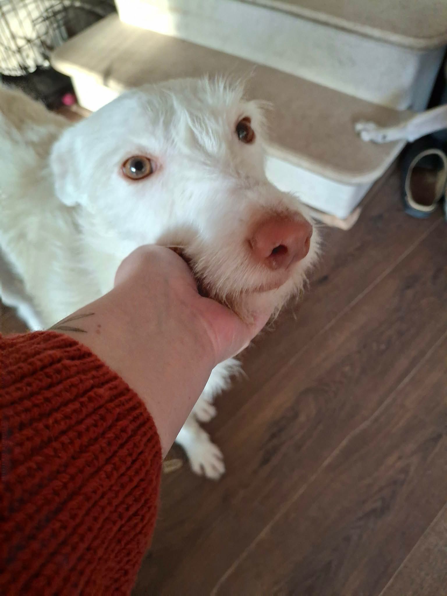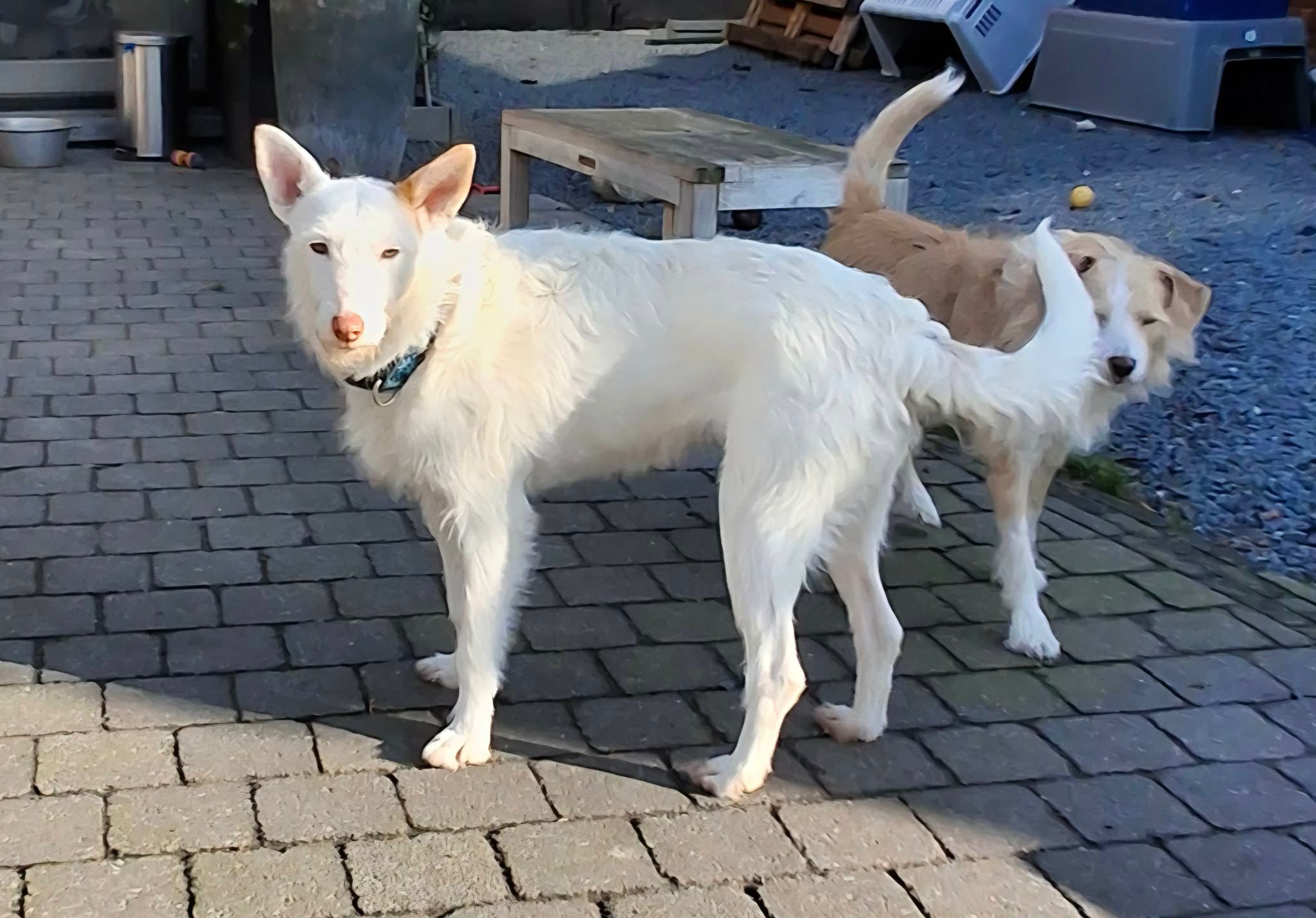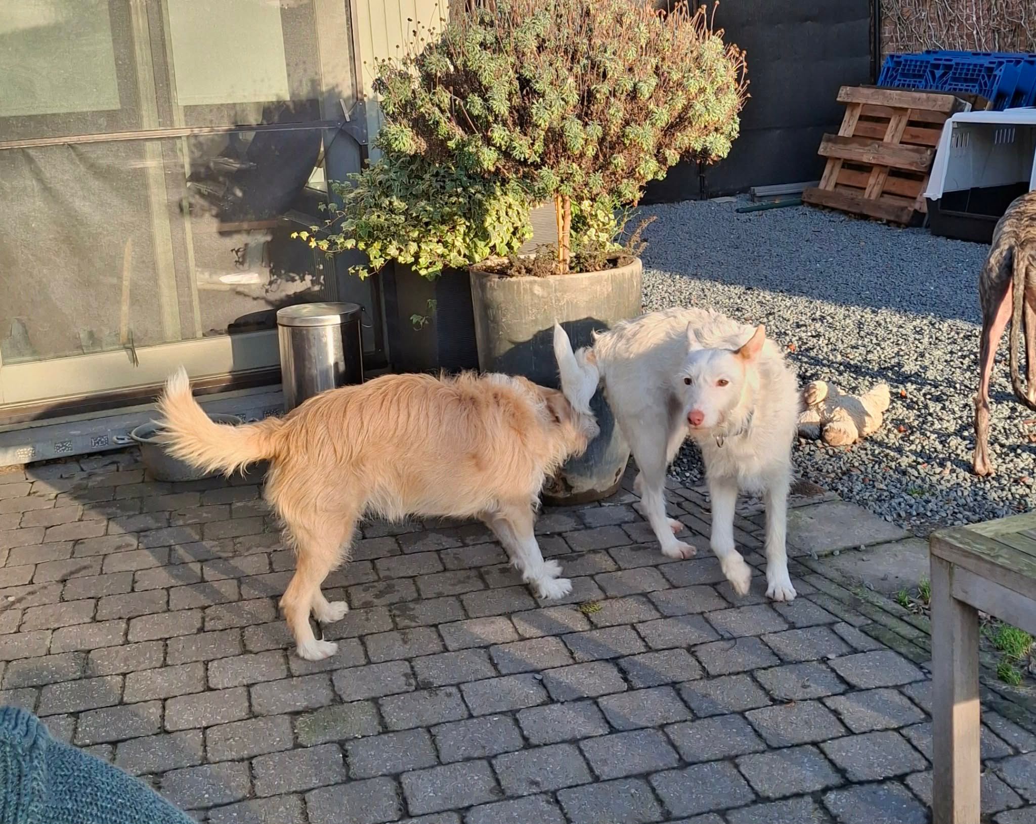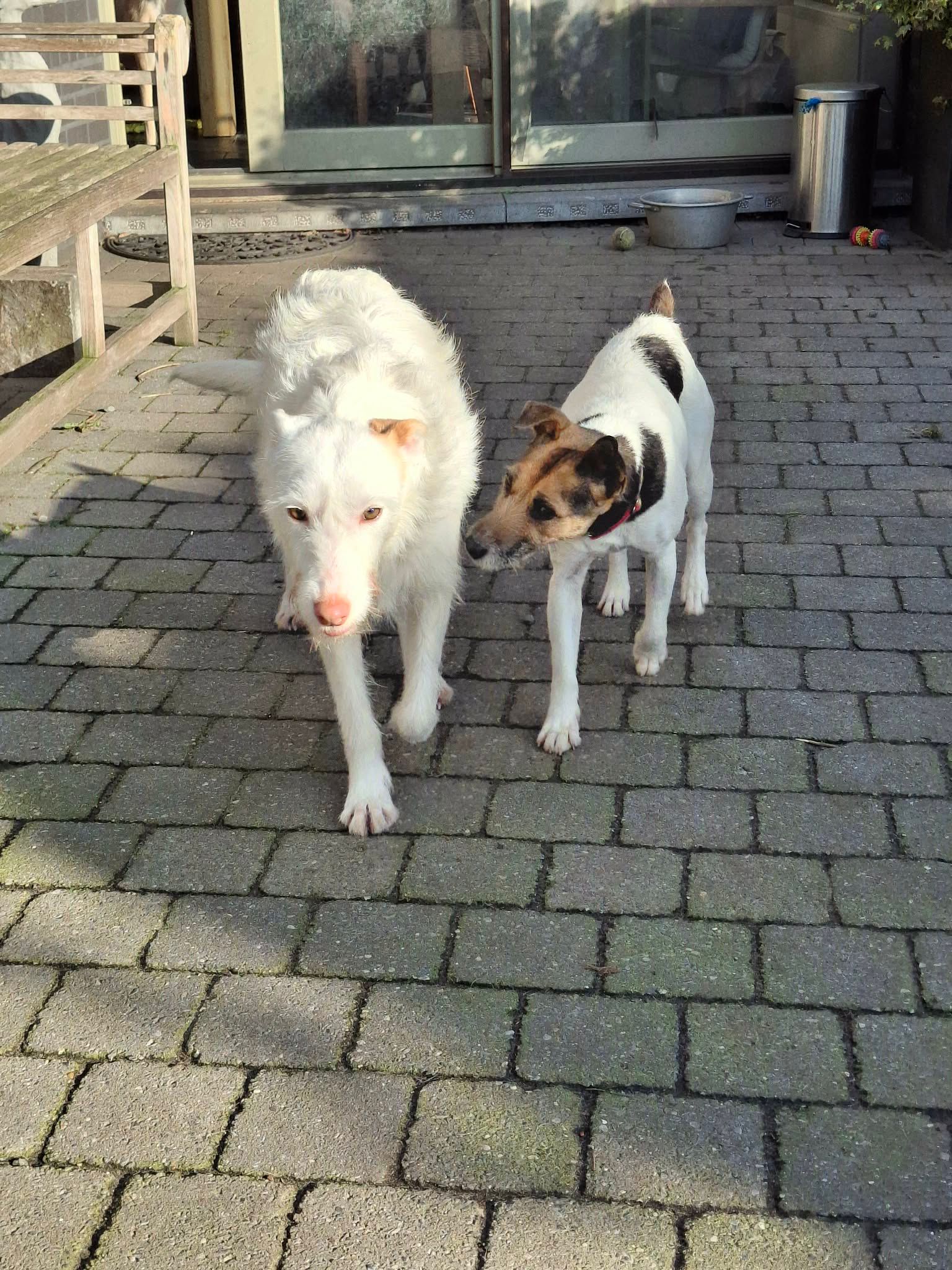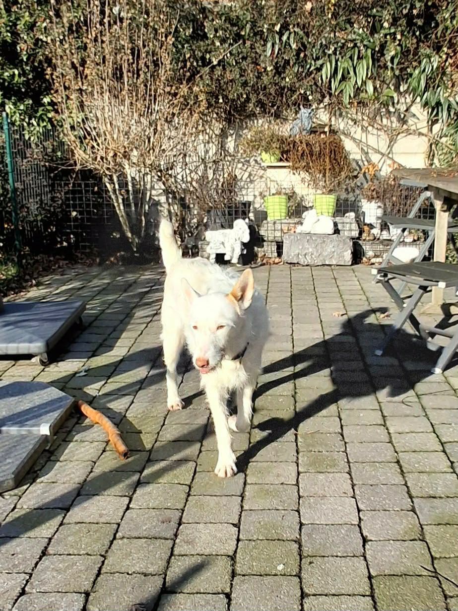 Dit prachtige podenco-meisje van 5 jaar oud doet haar naam alle eer aan: waar Sol is, schijnt de zon. Ze heeft een super vrolijk karakter, is speels, lief en dol op aaitjes, een perfecte mix van energie en knuffels. Daarnaast is ze een absolute schoonheid om te zien met haar lange witte haren.
