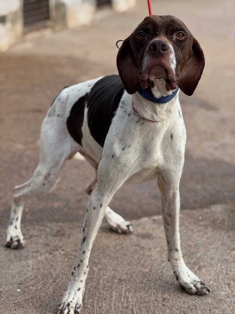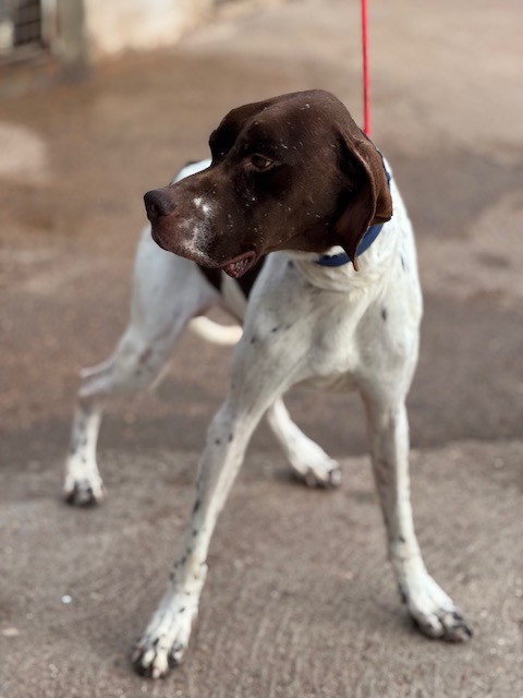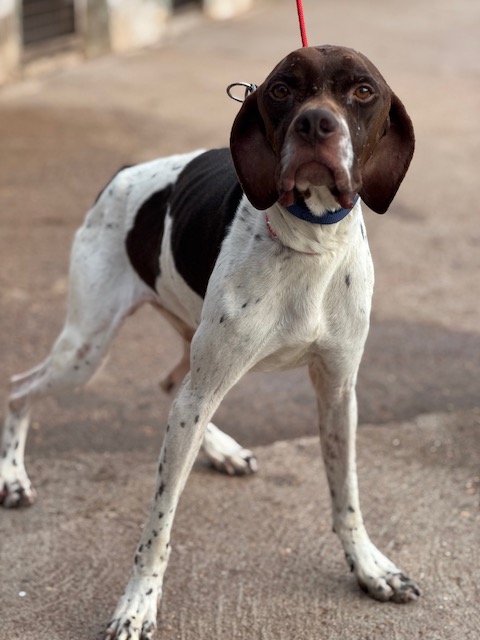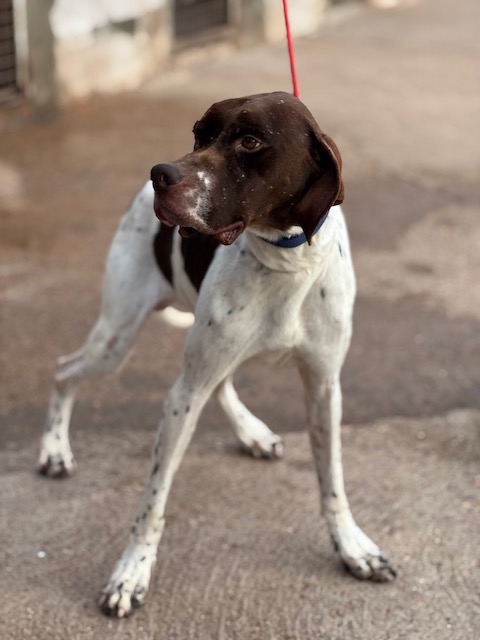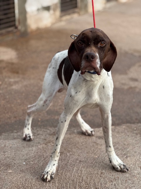 Salesiano is een prachtige Pointerreu van 3 jaar oud. In zijn korte leven heeft hij al veel te veel ellende meegemaakt. Hij is pas geleden gered uit een verschrikkelijke situatie (zie hieronder). Hij kwam bang en zeer mager aan in het asiel, maar gelukkig komt hij heel goed aan en is zijn angst ook aan het verdwijnen en is hij heel lief voor zijn verzorgers. Hij kan het ook goed vinden met de andere honden in het asiel.