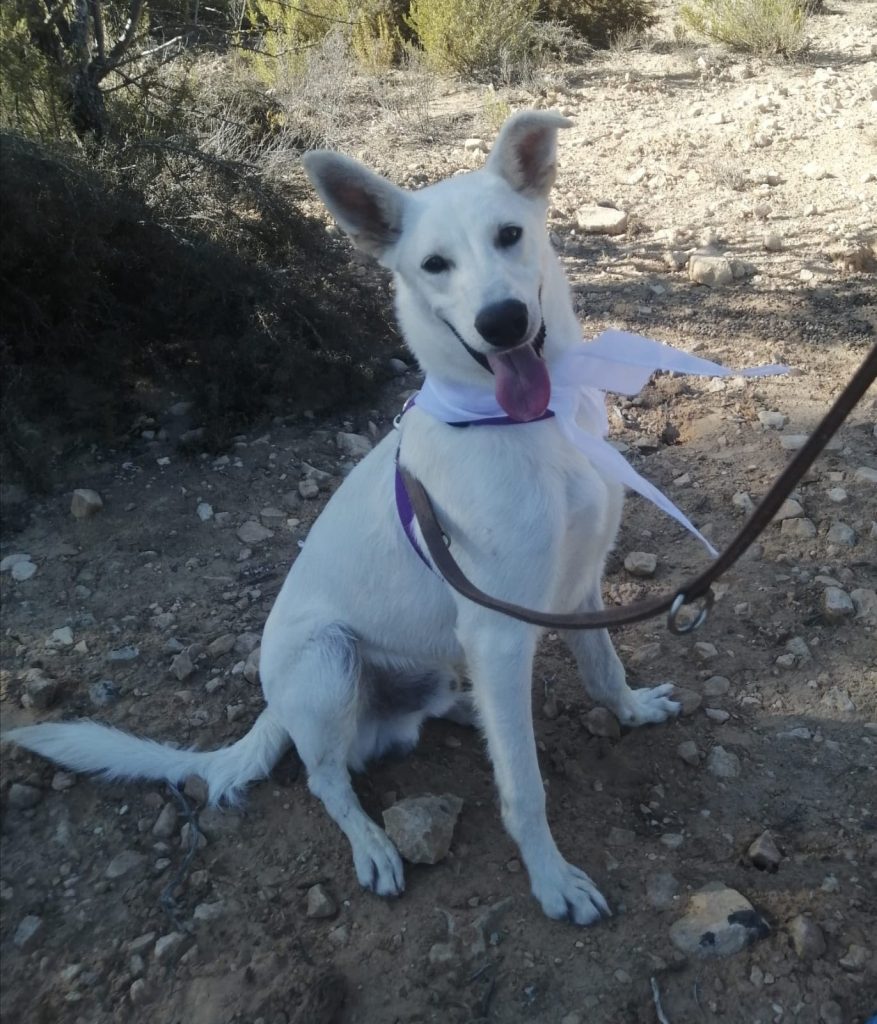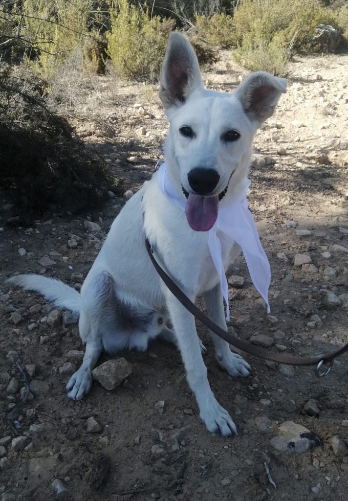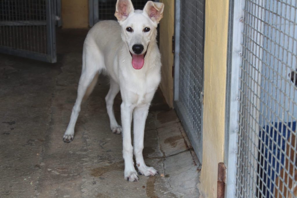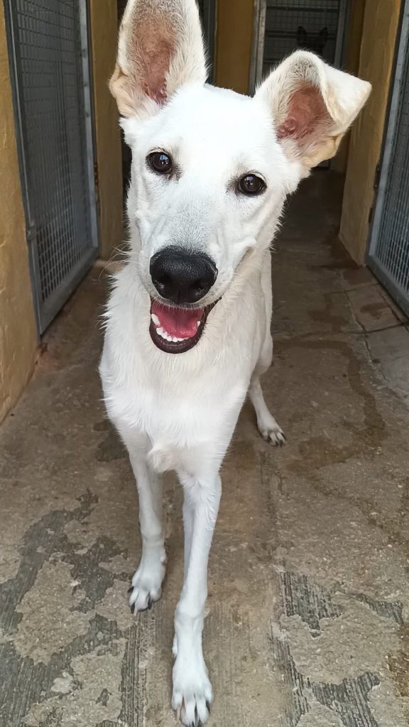 Deze prachtige jongeheer is 7 maanden oud, 63 cm hoog en weegt 19 kilo. Hij verblijft sinds een maand in het asiel en steelt daar al heel wat harten. Ken is een echte filmhond, hij loopt keurig aan de lijn, is super aanhankelijk en behoorlijk goed opgevoed. Hij kan het prima vinden met andere honden en heeft een vrolijke, energieke uitstraling. Katten zijn nog niet getest, maar de kattentest kan aangevraagd worden. Met andere honden gaat hij geweldig samen. Kortom: Ken is gewoon een witte parel dat staat te popelen om zijn eigen thuis te vinden.