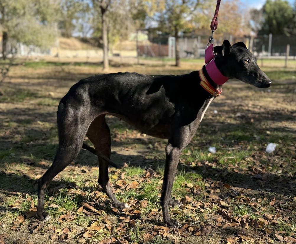 Pas net aangekomen in het asiel… Dit zwarte galgo teefje is een ontzettend aanhankelijk en lief meisje dat zichtbaar geniet van elk moment dat ze aandacht krijgt. Ze zoekt je blik, leunt graag tegen je aan en laat zich met liefde aaien.