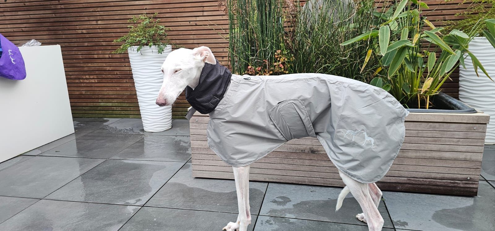 Super mooie kwaliteit dunne regenjas met voering en stevige klittenbandsluiting onder de buik.