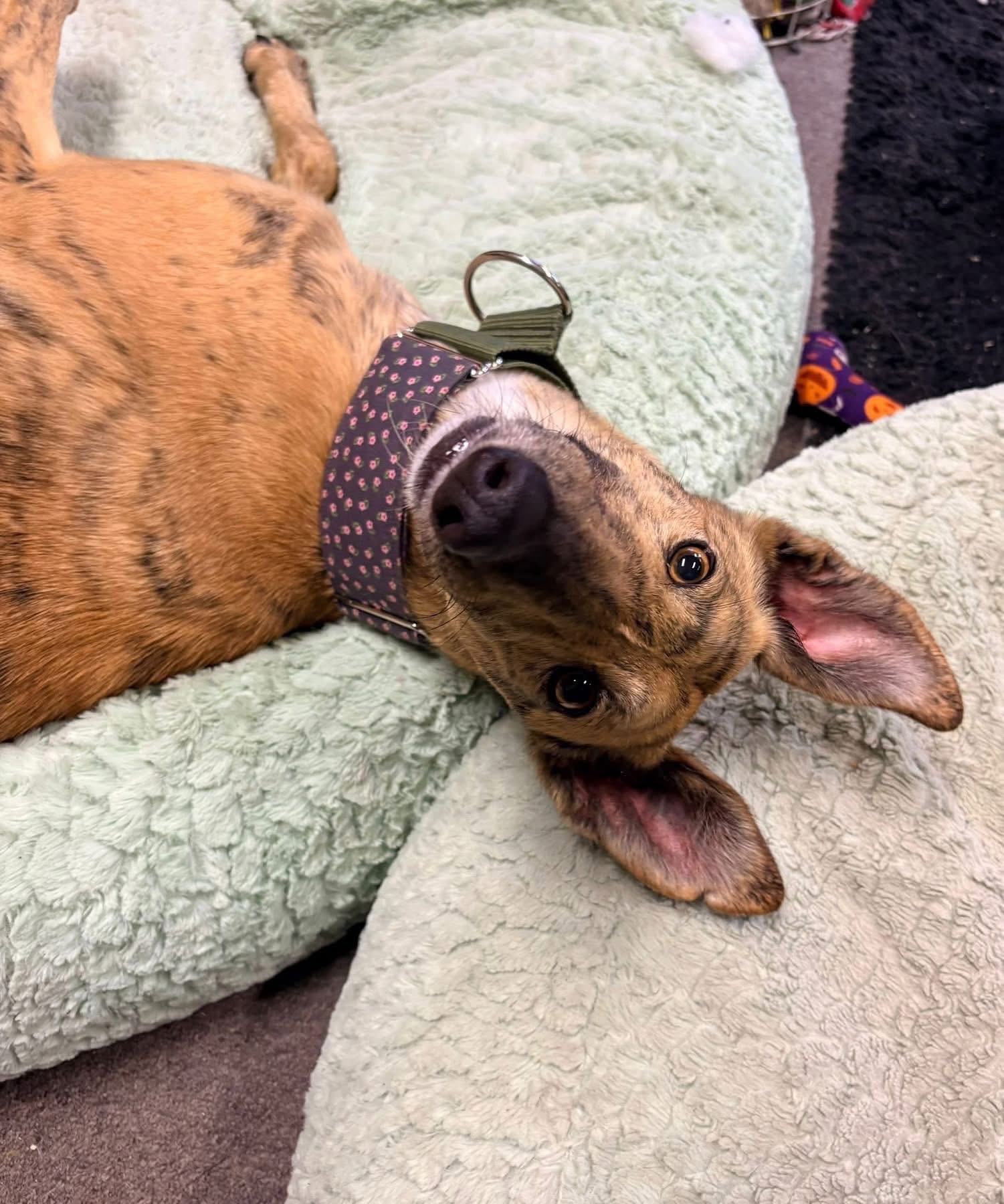 Soms komt er een galgo voorbij die je hart direct raakt. Andrea is zo’n meisje. Met haar zachte, dikke vacht – net een klein beertje – en haar lieve flapoortjes steelt ze moeiteloos de show. Maar achter haar warme uitstraling zit ook een energieke en vrolijke, speelse meid die graag samen op avontuur gaat.